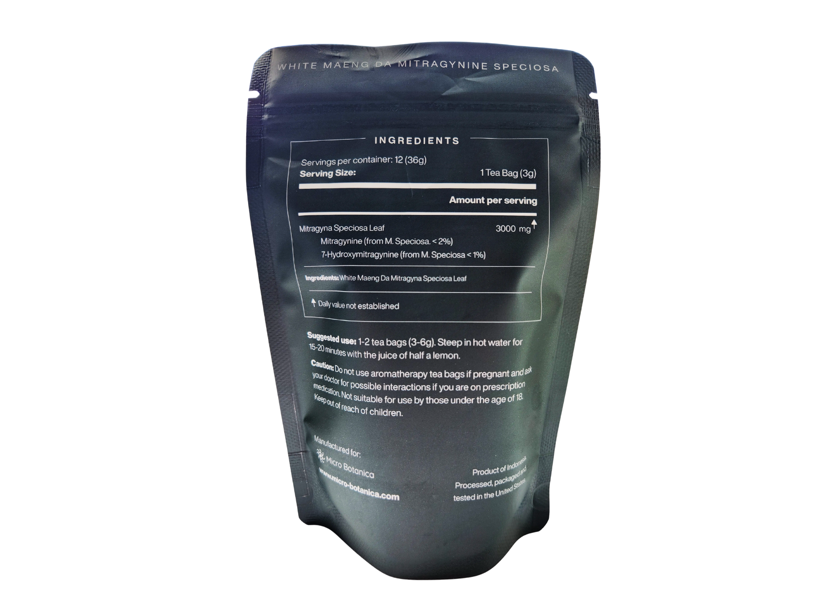White Maeng Da is an all natural pure white vein brew- perfect for the occasional morning or afternoon ritual. Contains 3g of Kratom per teabag.